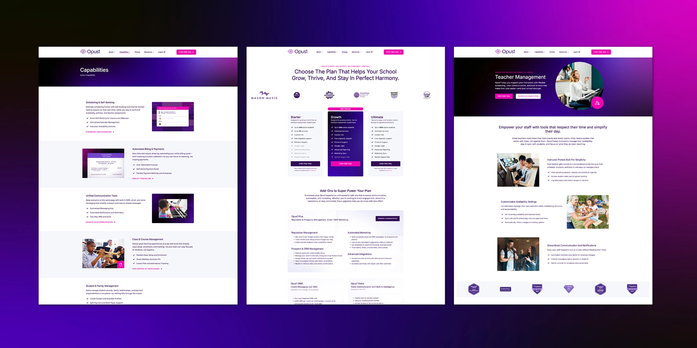 Opus1 provides all-in-one management software for music and performing arts schools, helping studio owners run every part of their business—from scheduling and billing to customer communication and teacher management—in a single platform. Built by a school owner for school owners, Opus1 stands apart by combining deep industry insight with intuitive tools that simplify operations without sacrificing control. The platform is growing quickly, with more than 40% year-over-year growth as word spreads across the music education community.